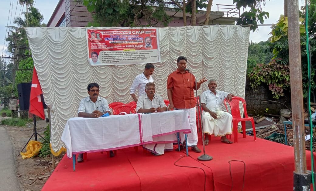 CMP അരവിന്ദാക്ഷൻ വിഭാഗം എറണാകുളം ജില്ലാ സമ്മേളനം നടത്തി പുതിയ ജില്ലാ കമ്മിറ്റി അംഗങ്ങളെ തിരഞ്ഞെടുത്തു ഭാരവാഹികളായി 11 അംഗജില്ലാ കമ്മിറ്റിയും ജില്ലാ സെക്രട്ടറിയായി സഖാവ് അഷ്റഫ് വാണിയ കാടിനെ തിരഞ്ഞെടുത്തു ജില്ലാ അസിസ്റ്റന്റ് സെക്രട്ടറിയായി കെ പി രാമചന്ദ്രൻ, ജമാൽ എന്നിവരെയും എക്സിക്യൂട്ടീവ് അംഗങ്ങളായി വിപിൻ, എം കെ അയ്യപ്പൻ, പി പി ശാന്ത എന്നിവരെയും കമ്മറ്റി അംഗങ്ങളായി സുരേഷ് കോട്ടപ്പടി, പ്രദീപ് കോട്ടപ്പടി, ഷാജി കാഞ്ഞിരക്കുഴി, മുഹമ്മദാലി മുണ്ടേത്ത്, ഹരികൃഷ്ണൻ എന്നിവരെ ജില്ലാ കമ്മിറ്റി അംഗങ്ങളയി തെരഞ്ഞെടുത്തു. ജമാൽ പ്രമേയം അവതരിപ്പിച്ചു.